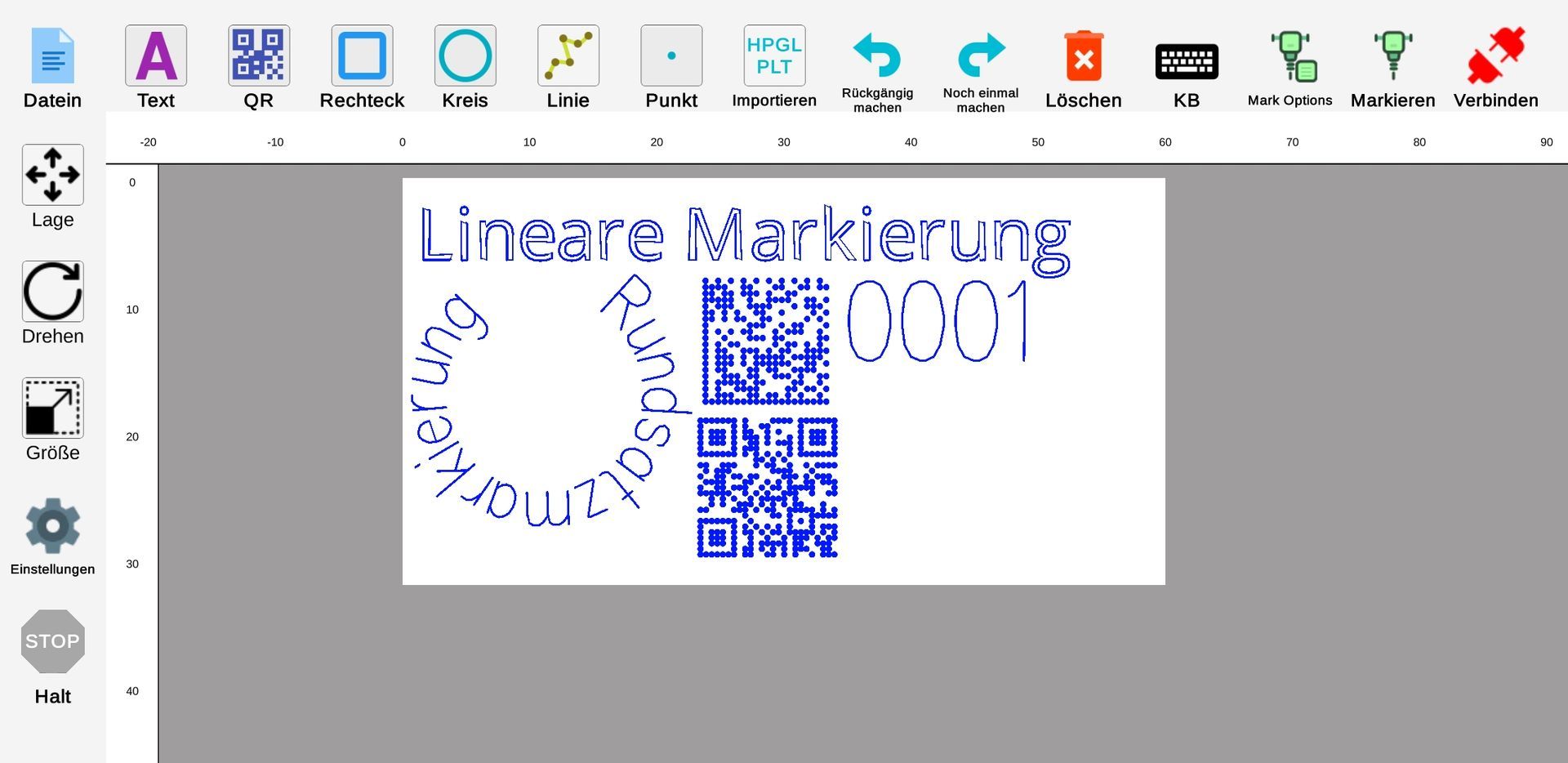 Fortlaufende Nummern, Serientexte, automatische Datum/Zeit Funktion, Logomarkierung, Datamatrix und QR-Code Markierung.